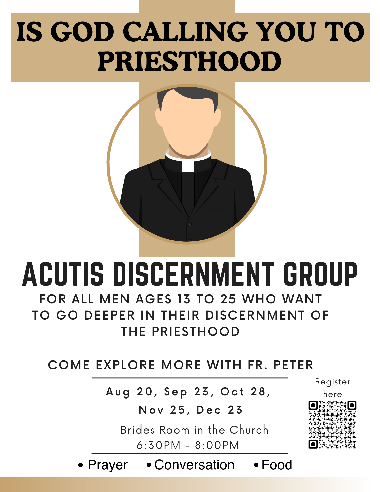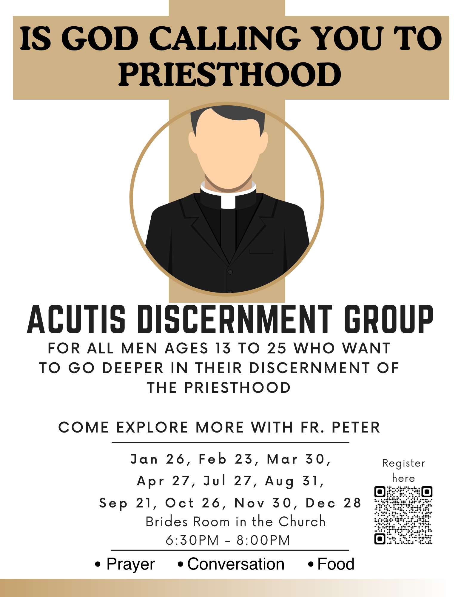 For all men ages 13 to 25 who want to go deeper in their discernment of the Priesthood.